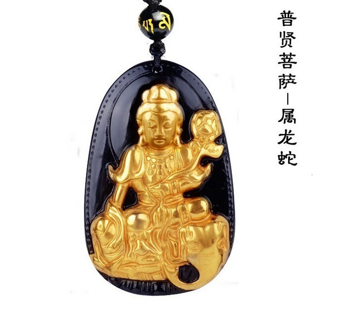 18k Gold Necklace With Natural Black Obsidian Buddha Amulet Pendant Unisex Lucky Charm Jewelry