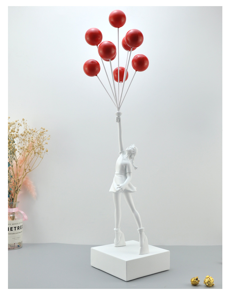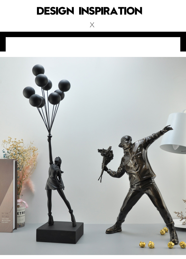 - Celebrate Love and Artistry: This luxurious figurine is not just a home decor piece, but a celebration of love and artistry. Experience the captivating allure of street art right in your home with our Banksy Inspired Balloon Girl Resin Sculpture.